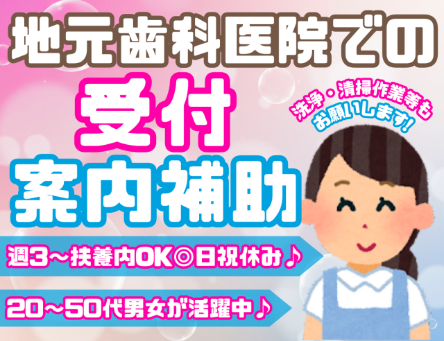 \NEW 新着求人!地元歯科医院での受付案内サポートスタッフ大募集/ 扶養内OK◎勤務時間お選びい...