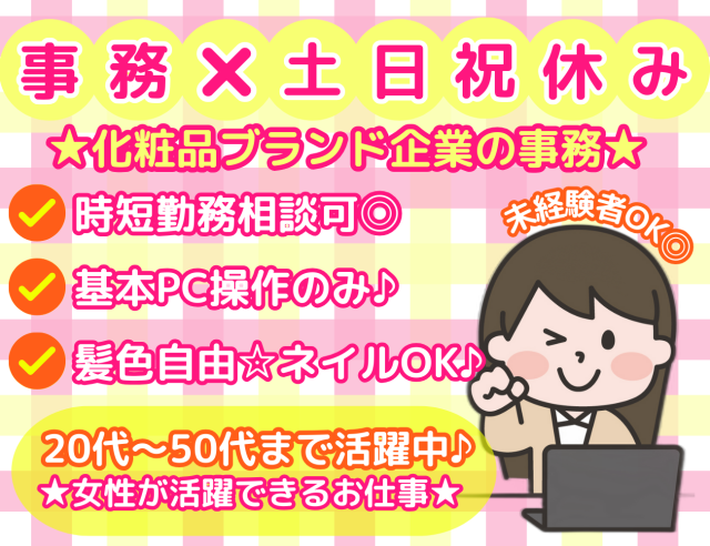 生産管理事務 \NEW 新着求人!/ 人気化粧品会社にてオフィスワークスタッフ大募集*** 基...